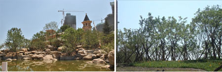 在這一排壯觀配套建筑的前方,是一片茂密蔥蘢的寬闊綠化帶,沿濱河東路一直向南延伸。這就是太原星河灣在紅線以外打造的據(jù)說是“最美一段”的市政綠帶。可以看到林帶中有各種高大豐富的喬木、低矮錯落的灌木,與大量顏色各異的地植花卉,一同織就了一條濃密旖旎的綠色長虹。遠遠望去,這條寬闊林帶,與周邊完善市政綠化、身后星河灣園林隱隱綻放的美景、以及政府未來在此片區(qū)重點打造的數(shù)個大型公園,匯積成一整片連綿的綠帶林海。據(jù)說星河灣以自身園林標準打造的這條市政綠帶,種植很多與園林中同樣、遷移自全國各地的珍貴樹木。這不禁使人想象真正成品開放后的星河灣園林將又是一番怎樣的摸樣。