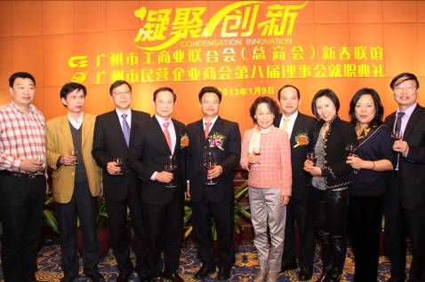 1月9日晚,廣州市工商聯(總商會)新春聯誼暨廣州市民營企業商會第八屆理事會就職典禮在東方賓館舉行。市委書記萬慶良、市長陳建華、市人大常委會主任張桂芳、市政協主席蘇志佳等領導到會祝賀,并與工商界人士歡慶新春。