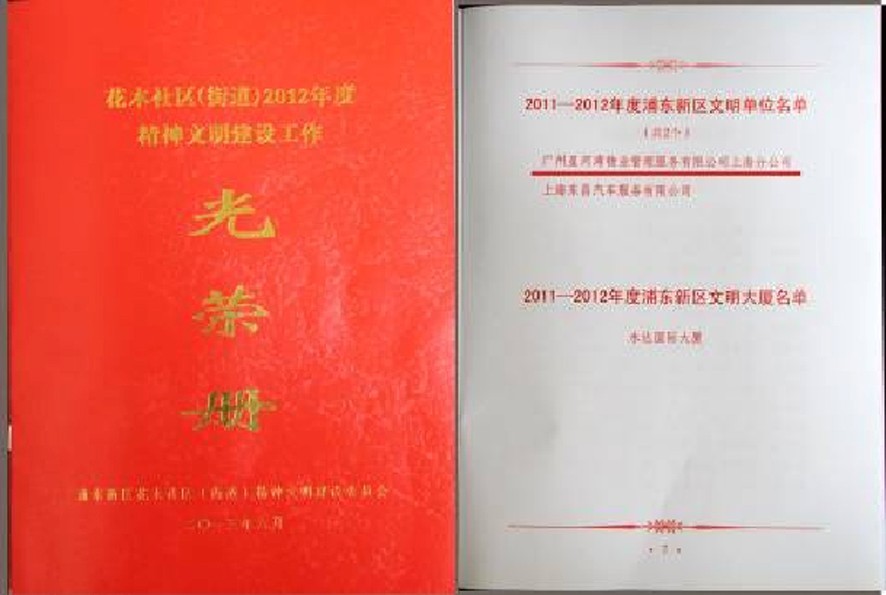在2013年5月舉辦的上海市浦東新區精神文明建設工作會議上,浦東星河灣榮獲年度浦東新區“文明小區”的稱號;星河灣物業上海分公司榮獲年度浦東新區“文明單位”稱號,同時被錄入上海市浦東新區精神文明建設委員會匯編的《上海市精神文明建設光榮冊》。