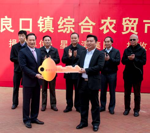 2013年12月25日上午,從化良口鎮人民政府代表從黃董手中接過“金鑰匙”,這象征著由星河灣集團投入5100萬元捐建的綜合農貿市場,順利移交給從化市良口鎮人民政府。當天,廣州市政協主席蘇志佳,廣州市委副書記、市農村扶貧開發工作領導小組組長方旋,廣州市農業局黨委副書記王健舜,從化市委書記黃河鴻、市長蔡澍、市委副書記王建紅、副市長孫石康等參加了移交儀式。