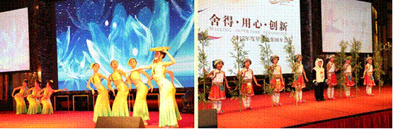 特別值得一提的是,每年晚會(huì)都邀請(qǐng)汶川第一小學(xué)的小朋友們進(jìn)行表演。汶川第一小學(xué)是星河灣恪守企業(yè)對(duì)社會(huì)的責(zé)任,積極推動(dòng)慈善事業(yè)的其中一項(xiàng)成就。小學(xué)建成后,星河灣積極開(kāi)展了星河灣和汶川一小之間的交流活動(dòng),每年年會(huì)全體星河灣人以實(shí)際行動(dòng)愛(ài)心捐款,而當(dāng)晚他們帶來(lái)的表演《竹林情韻》也讓大家看到了汶川小朋友正健康、快樂(lè)地成長(zhǎng)著。