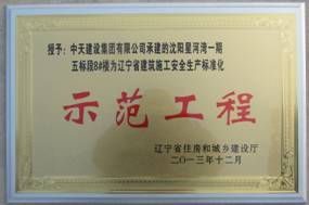 在遼寧省建筑施工安全生產(chǎn)標(biāo)準(zhǔn)化的年度評(píng)選中,遼寧省住房和城鄉(xiāng)建設(shè)廳授予沈陽(yáng)星河灣“遼寧省建筑施工安全生產(chǎn)標(biāo)準(zhǔn)化示范工程”獎(jiǎng)牌。