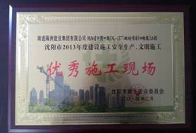 在沈陽(yáng)市建設(shè)施工安全生產(chǎn)、文明施工的年度評(píng)選中,沈陽(yáng)星河灣被沈陽(yáng)市城鄉(xiāng)建設(shè)委員會(huì)評(píng)為“2013年度建設(shè)施工安全生產(chǎn)、文明施工優(yōu)秀施工現(xiàn)場(chǎng)”。