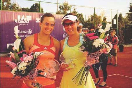 2014年斯洛伐克國(guó)際女子網(wǎng)球公開(kāi)賽于5月11日落下帷幕。在凌晨結(jié)束的女子雙打冠、亞軍爭(zhēng)奪賽中,中國(guó)網(wǎng)壇小花——來(lái)自星河灣職業(yè)網(wǎng)球俱樂(lè)部的鄭賽賽組合以2比0(6:4,6:2)戰(zhàn)勝對(duì)手后奪冠。