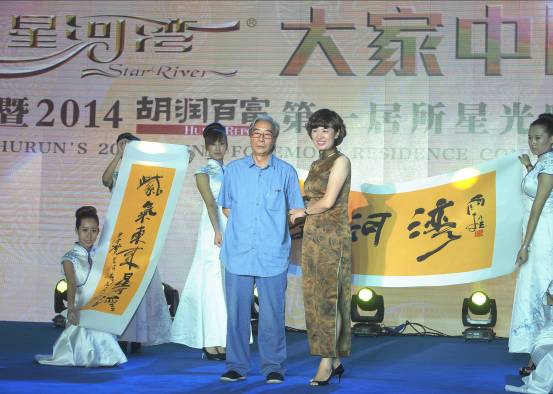 如果說胡潤先生的報告更側重談財智階層追求中物質層面的新趨勢,那么于丹女士的演講則是圍繞著“好房子”里的“好日子”展開。她精透闡釋了居所、家族、家風三者的內在聯系,獲得了與會者的高度認同和與會專家的高度評價。 作為沈陽星河灣的業主,性格秉直的宋雨桂先生在發言時說:“我買星河灣,沖的就是黃文仔。這個人真誠,善良,喜歡收藏歷史,因此他建的房子值得信任。”宋雨桂先生當場送出了他的墨寶:“滄海橫流吐春鶯,紫氣東來星河灣”。胡潤研究院“遼寧最受尊敬的企業家”揭曉,將晚宴氣氛推向高潮。