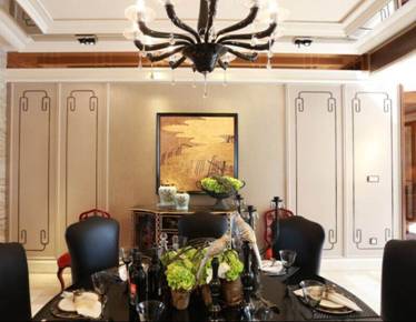廚房采用雙開門設計,玫瑰金鏡鋼包邊通透感材質,更具時尚及空間感。中國紅著色,3D切割技術工藝加工成的椅子,呈現完美椅背弧度,構造中國古典的祥云圖案,是中西合璧的創新設計。充滿中國味道的漆柜,設計依據17、18世紀荷蘭、英國皇家漆柜,盡顯中式時尚。
