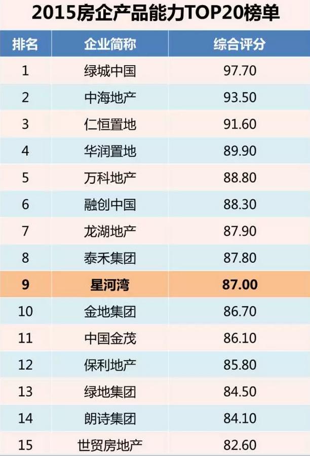 日前,由中國房地產測評中心和克而瑞研究中心聯合發布的《2015中國房企產品能力TOP20》排行榜揭曉,星河灣集團榮譽入榜。