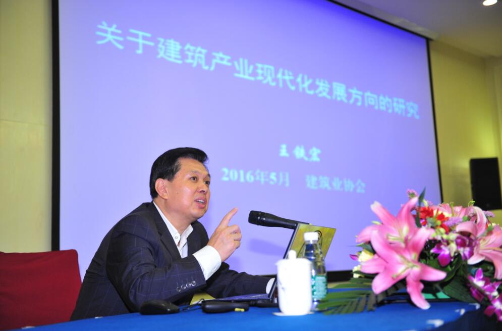 建筑業協會會長、住房和城鄉建設部科技委副主任王鐵宏教授做了題為《關于建筑產業現代化發展方向的研究》的講座。