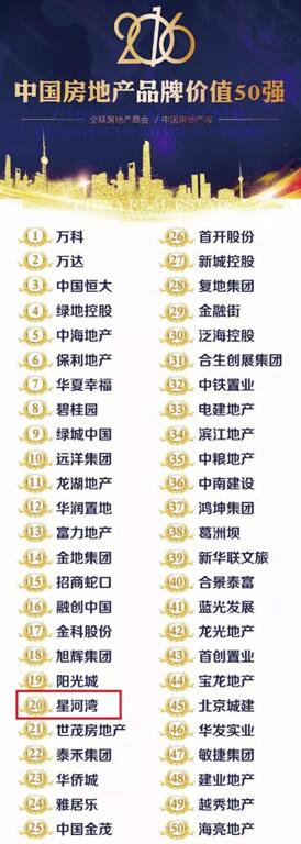 星河灣集團(tuán)躋身“2016中國(guó)房地產(chǎn)企業(yè)品牌價(jià)值榜”NO.20