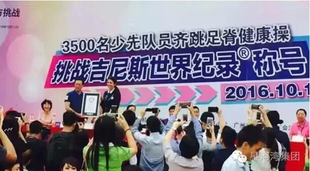 10月12日,在吉尼斯認(rèn)證官與眾多嘉賓的見證下,星河灣執(zhí)信中學(xué)附屬小學(xué)的2000多位少先隊員和友校在星執(zhí)的操場上一起跳“足脊健康操”,為世界展現(xiàn)了3784人一起跳健康操的壯觀場面。并成功創(chuàng)造了足脊健康操吉尼斯世界紀(jì)錄,成為世界紀(jì)錄保持者。