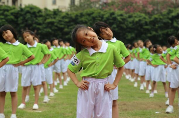 星河灣執(zhí)信中學(xué)附屬小學(xué)少先隊員和友校共3784人一起跳“足脊健康操”