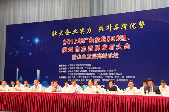 8月3日上午,2017年廣東企業500強、廣東省優秀自主品牌發布大會暨企業發展高峰論壇在廣州白云國際會議中心舉行。