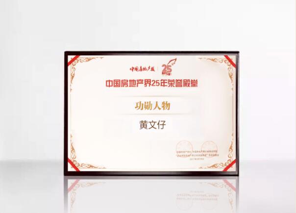 星河灣集團(tuán)董事長(zhǎng)黃文仔先生榮獲中國(guó)房地產(chǎn)界25年榮譽(yù)殿堂—功勛人物獎(jiǎng)。