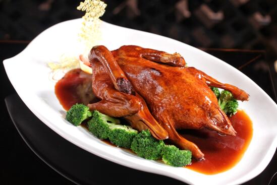 瑤柱、火腿、咸蛋黃……一只陳皮八寶鴨“別有洞天”。通過(guò)烹調(diào),鴨肉飽吸8種食材的清香,變得金紅軟糯。一口下去,既有鴨肉的酥香,也有各種食材的香糯,口感豐富。