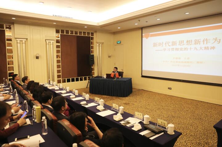 在報告中,尹德慈從黨的十九大報告“熱詞”分析說起,結合非公有制經濟的特點,解讀了習近平新時代中國特色社會主義思想的精神實質和豐富內涵,闡述了學習貫徹黨的十九大精神的重大意義。