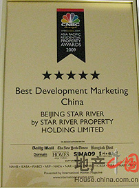 日前,記者從星河灣地產獲悉,7月16日11時30分,北京星河灣(樓盤詳情 戶型圖 樓盤圖 論壇)再次榮獲CNBC住宅營銷五星大獎。國內地產項目參與此競賽,僅星河灣榮獲五星大獎,是中國區地產項目所獲得的最高級別獎項。而這也是北京星河灣繼2008年榮獲CNBC國際房地產亞太區最佳公寓獎之后,再一次創造的輝煌。